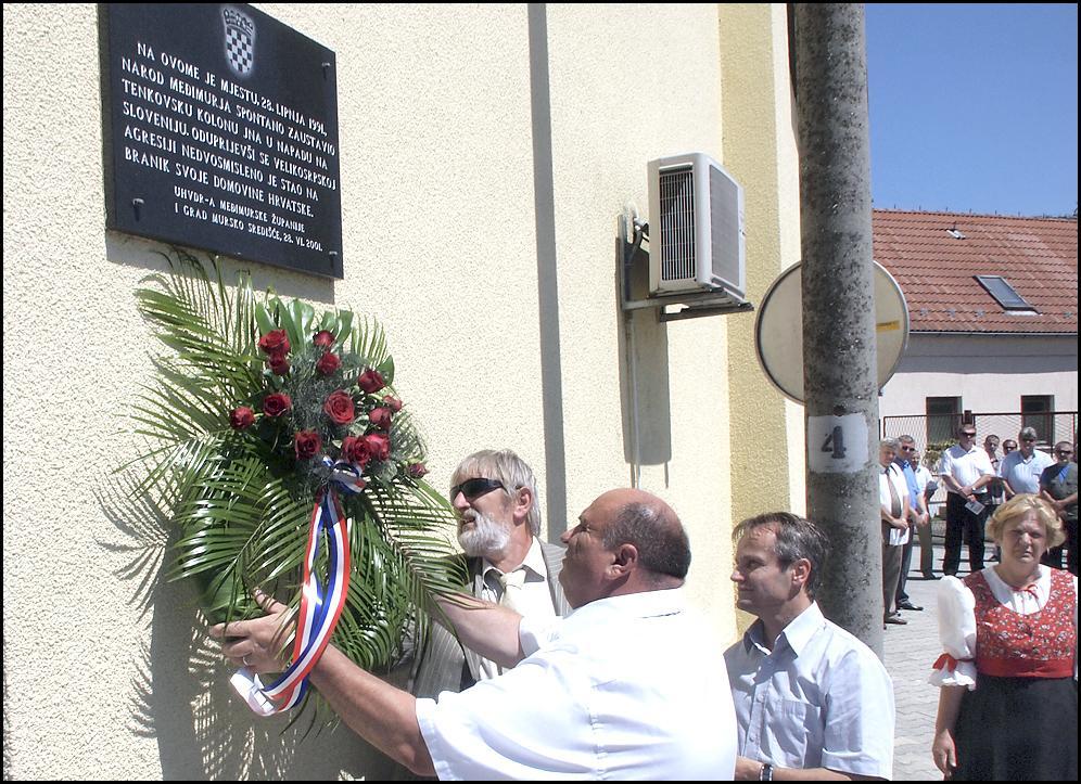 Prigodnom svečanošću minulog utorka obilježena je 20. obljetnica zaustavljanja kolone tenkova JNA koja je iz varaždinske vojarne krenula put Slovenije. Stanovnici Murskog Središća u to su vrijeme 1991. godine načinili živi štit i time spriječili prelazak tenkova preko mosta na Muri i njihov ulazak u Sloveniju.