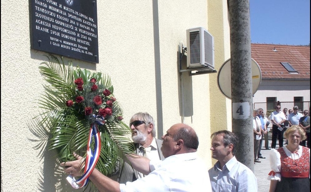 Vijenac ispred spomen-ploče postavljene na zgradi pozicioniranoj tik uz mjesto na kojem se događao narod položili su župan Ivica Perhoč i gradonačelnik Murskog Središća Josip Dobranić.